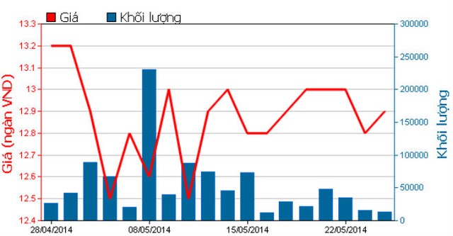 Một tháng qua, cổ phiếu EIB có khá nhiều biến động, dao động trong khoảng 12.500 - 13.400 đồng/CP, trung bình mỗi phiên giao dịch hơn 528.000 đơn vị, giá trị hơn 6,735 tỷ đồng.