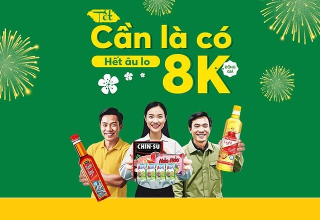 Các mặt hàng được hỗ trợ giá ở mức “tượng trưng” là 8.000 đồng/sản phẩm, gồm dầu ăn Neptune loại 1 lít, nước mắm Nam Ngư loại 500ml, hạt nêm Chinsu loại 500g, combo 5 gói mì Hảo Hảo loại 75gr/gói và combo 4 lốc sữa Vinamilk ADM loại 180ml.