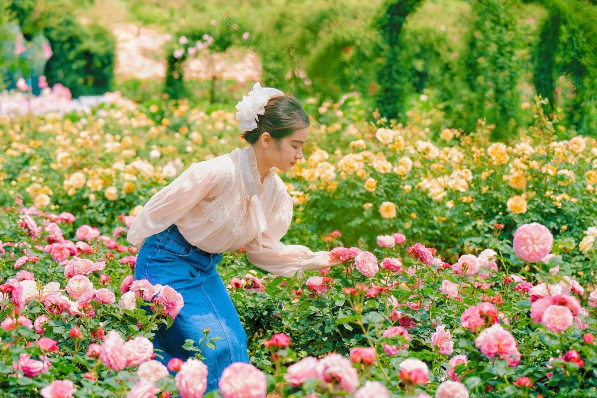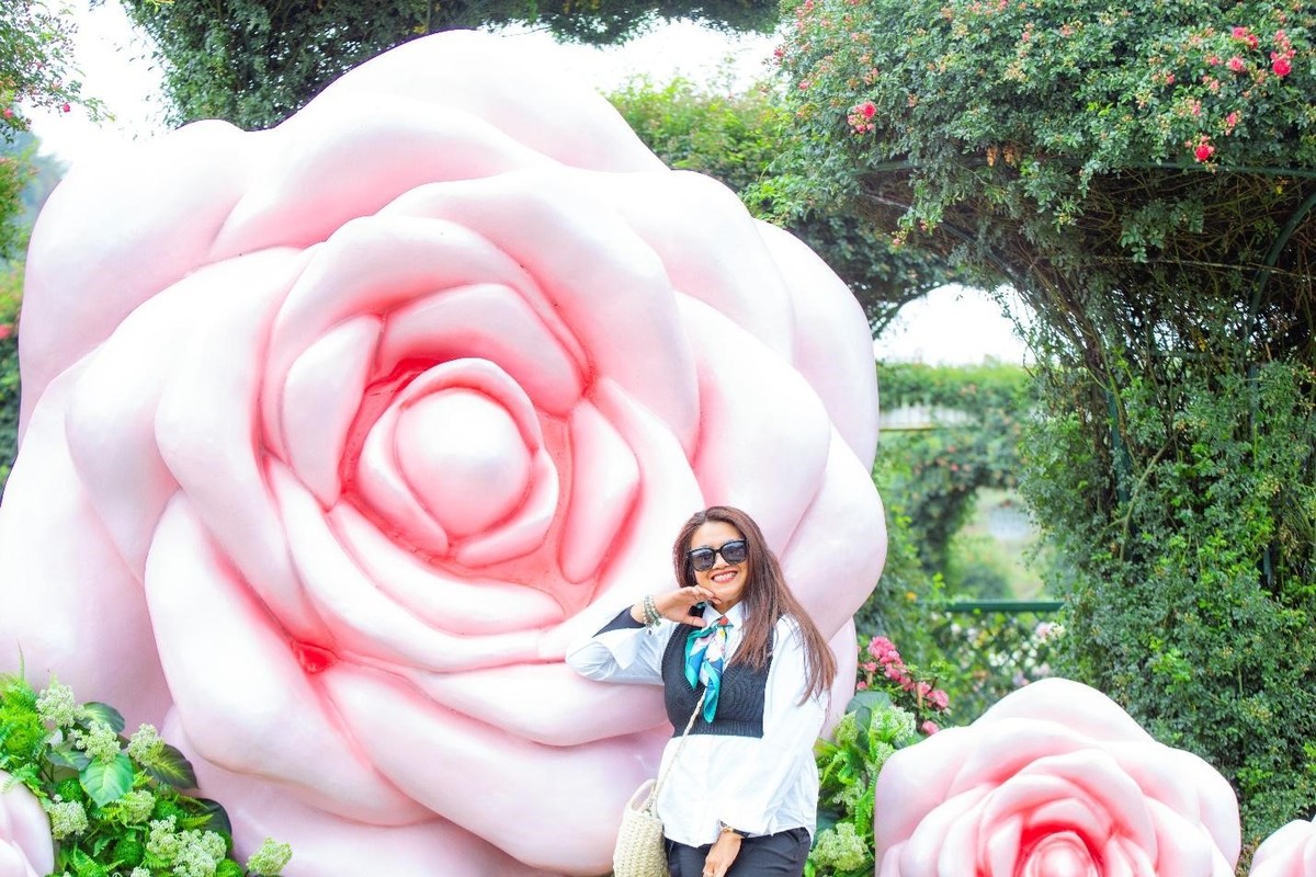 Tại đây, du khách được đắm chìm trong không gian rực rỡ với hàng triệu đóa hồng từ hồng leo Sa Pa, hồng cổ, đến những giống hoa quý hiếm nhập khẩu như Abraham Darby, Juliet, Black Baccarat...