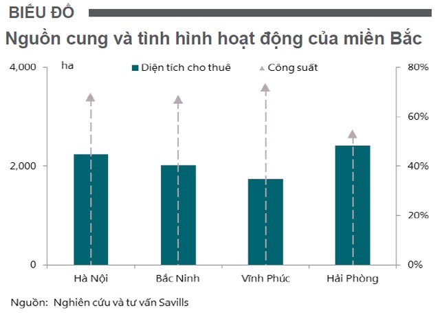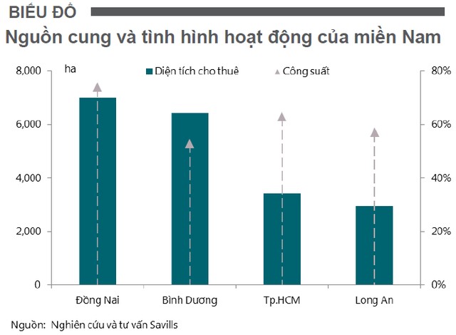 Tổng diện tích cho thuê của nửa đầu 2016 đạt 28.500 ha, tăng 5% so với nửa cuối 2015. Mặc dù nguồn cung tăng, công suất cho thuê tăng đến 70% nhờ dòng vốn FDI, cao hơn 3 điểm phần trăm so với đầu năm.