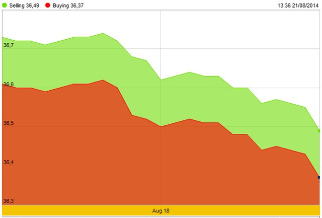 Hôm nay, giá vàng tiếp tục giảm và đã xuống mức thấp trong vòng 2 tháng trong một đợt giảm dài nhất kể từ tháng 6 trên sàn London. Thị trường châu Á và châu Âu trong ngày này tiếp tục phản ánh thông tin về biên bản cuộc họp FOMC đêm qua.