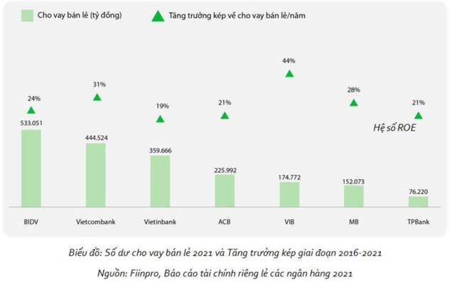 Ngân hàng bán lẻ đang là xu hướng chung của ngành ngân hàng, trong 5 năm qua top 7 ngân hàng đều có những bước chuyển đổi nhất định thể hiện qua tốc độ tăng trưởng bán lẻ trung bình đều trên 20%, trong khi tăng trưởng tín dụng trung bình của ngành chỉ ở mức 14%.