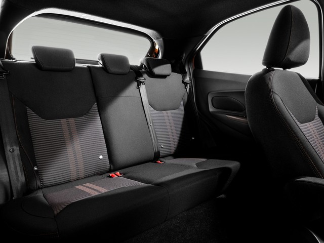 Những công nghệ an toàn trên Ford Ka+ mới gồm hỗ trợ khởi hành ngang dốc, thiết lập giới hạn tốc độ, sáu túi khí, cân bằng điện tử, cảnh báo áp suất lốp. Xe có kính cửa và gương chiếu hậu chỉnh điện.