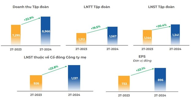 Lợi nhuận sau thuế cho cổ đông công ty mẹ và EPS lần lượt đạt 1,137 tỷ đồng và 896 đồng/cổ phiếu, tăng 22,8% và 22,1%.