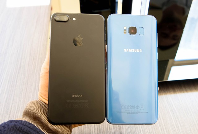 S8 Plus cũng được trang bị nhiều công nghệ bảo mật hơn: phía trước là camera nhận diện khuôn mặt và bảo mật mống mắt, phía sau là cảm biến vân tay, trong khi iPhone hiện chỉ có cảm biến vân tay. Camera của S8 không còn lồi như thế hệ trước.