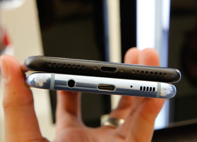 Samsung vẫn giữ giắc cắm tai nghe 3,5mm trên smartphone mới của mình và chuyển cổng kết nối qua USB Type C trong khi iPhone 7 Plus đã bỏ giắc cắm tai nghe.