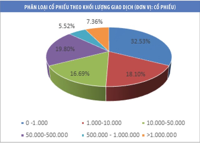 Tuy nhiên, giao dịch chỉ tập trung vào một nhóm nhỏ cổ phiếu. Thống kê cho thấy, trong tổng số hơn 700 công ty niêm yết trên 2 sàn HOSE và HNX, gần 1/3 số cổ phiếu có thanh khoản rất thấp, thậm chí không có giao dịch. Bên cạnh đó, rất nhiều cổ phiếu không tăng giá. Hiện có hơn 36% số cổ phiếu có thị giá dưới mệnh giá, trong đó gần một nửa có giá vài ba ngàn đồng.
