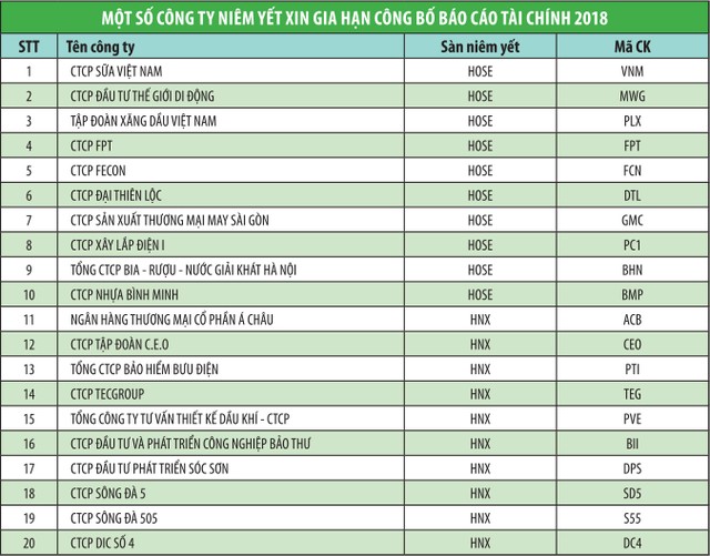 Khảo sát của Báo Đầu tư Chứng khoán cho thấy, với doanh nghiệp có cấu trúc hoạt động càng nhiều cấp, phát sinh nhiều giao dịch nội bộ, có nhiều khoản đầu tư, nhiều công ty liên kết… thì quá trình hợp nhất càng mất nhiều thời gian. Tuy nhiên, trong danh sách gần 400 doanh nghiệp xin gia hạn công bố báo cáo tài chính, vẫn xuất hiện không ít doanh nghiệp vốn được xem là có hệ thống quản trị tài chính tốt, có hệ thống công nghệ thông tin hiện đại..., chẳng hạn như CTCP Sữa Việt Nam (Vinamilk - mã VNM), CTCP Đầu tư Thế Giới Di Động (mã MWG)...
