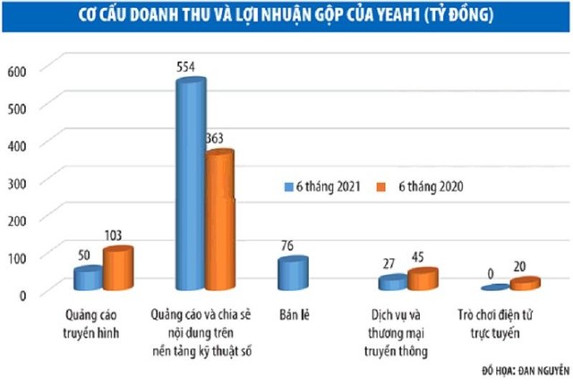 Bán lẻ là mảng kinh doanh mà Yeah1 mới tham gia trong gần một năm qua. Theo báo cáo tài chính nửa đầu năm, riêng mảng bán lẻ mang về 62,2 tỷ đồng doanh thu. Chi phí lớn đã khiến kết quả kinh doanh bộ phận này âm tới gần 49 tỷ đồng. Lợi nhuận gộp của mảng quảng cáo và chia sẻ nội dung trên nền tảng kỹ thuật số tăng gần 25% so với cùng kỳ. Dù vậy, khoản lỗ chủ yếu từ mảng kinh doanh mới là nguyên nhân khiến Yeah1 kinh doanh dưới giá vốn.