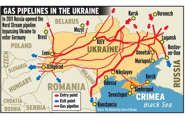 Sơ đồ các đường ống vận chuyển dầu - khí từ Nga qua lãnh thổ Ukraine