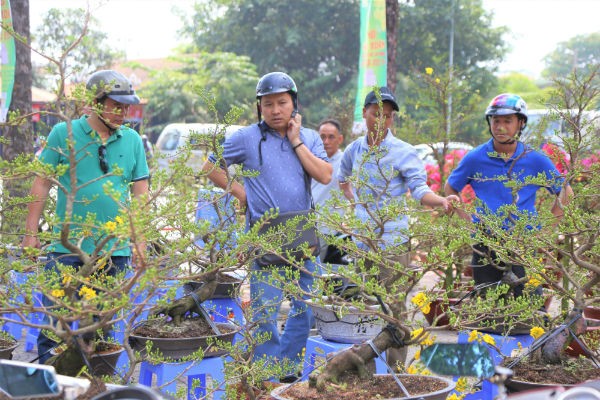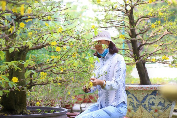 Chọn lựa thật kỹ chậu mai để mua. Chị Thúy, ngụ quận Phú Nhuận cho biết năm nay chị chọm mua cho mình chậu mai vàng, và chị chọn cây nụ nhiều để nở tới qua tết chứ không chọn mua những cây mai đã nở rộ.