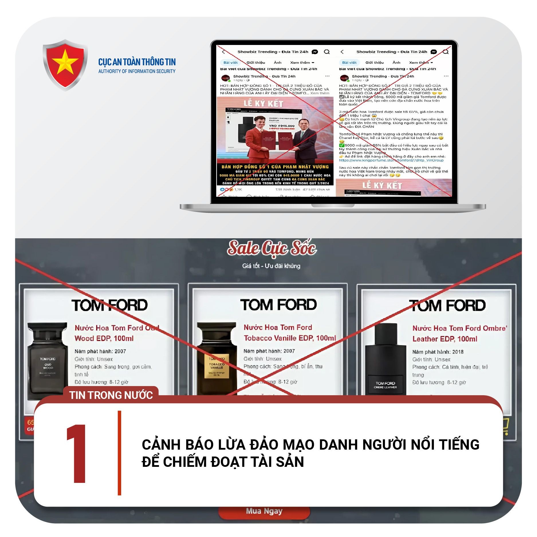 Cục An toàn thông tin (Bộ Thông tin và Truyền thông) vừa cảnh báo, mới đây, trên Fanpage Facebook có tên “Showbiz Trending - Đưa Tin 24h” đăng tải một bài viết có tên “Bản hợp đồng số 1 - Trị giá 2 triệu đô của Phạm Nhật Vượng dành cho gà cưng Xuân Bắc và nhãn hàng của anh ấy đại diện - Tomford”.