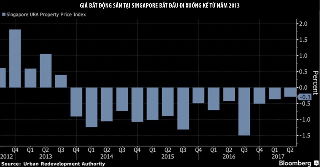 Chỉ số theo dõi giá nhà ở dân cư tại Singapore đã giảm 0,3% trong 3 tháng kết thúc vào ngày 30/6 so với quý trước đó, theo số liệu sơ bộ được Cơ quan Quy hoạch đô thị nước này công bố. Diễn biến này đánh dấu quãng thời gian gần 4 năm đi xuống của giá nhà, mức dài nhất kể từ khi các số liệu được công bố vào năm 1975.