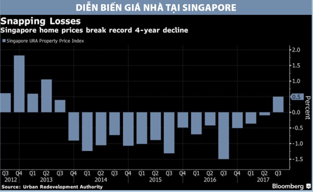 Việc giá nhà nhích nhẹ và các nhà phát triển bất động sản tích cực hơn trong hoạt động mua đất đã tạo nên kỳ vọng lạc quan rằng, thị trường bất động sản tại đảo quốc này đang hồi phục, mặc dù các biện pháp hạ nhiệt thị trường liên tiếp được ban hành kể từ năm 2009 vẫn đang còn hiệu lực. Trước khi tăng vào quý III/2017, giá nhà tại đây đã giảm 15 quý liên tiếp, lập kỷ lục chuỗi giảm dài nhất kể từ khi chỉ số này được công bố vào năm 1975.
