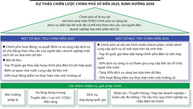 Đó là nâng tỷ trọng kinh tế số chiếm 20% GDP, tỷ trọng kinh tế số trong từng ngành và lĩnh vực đạt tối thiểu 10%, năng suất lao động hàng năm tăng tối thiểu 7% và đưa Việt Nam vào nhóm 50 nước dẫn đầu về công nghệ thông tin và chỉ số cạnh tranh, lọt vào nhóm 35 quốc gia dẫn đầu về đổi mới sáng tạo.
