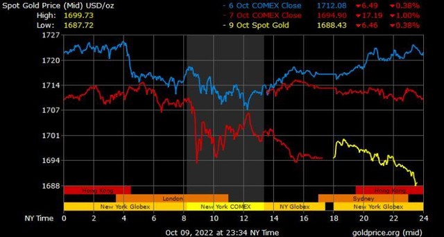 Giá vàng tương lai giao tháng 12/2022 trên sàn Comex New York giảm 11,5 xuống 1.709,3 USD/ounce.