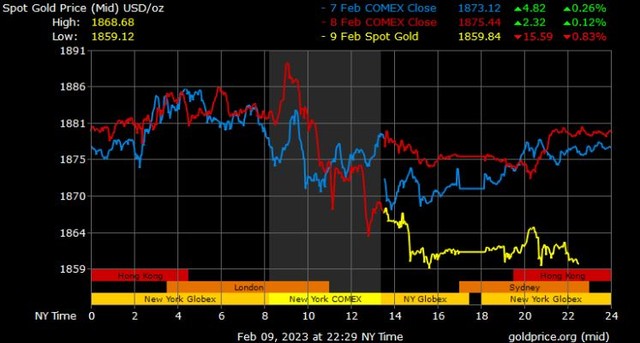 Giá vàng tương lai giao tháng 4/2023 trên sàn Comex New York giảm 12,2 USD xuống 1.878,5 USD/ounce.