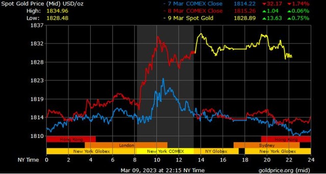 Trong khi thị trường chung trầm lắng hơn thì vàng lại tăng khá tốt, trước báo cáo tình hình việc làm tháng 2 của Hoa Kỳ từ Bộ Lao động vào sáng thứ Sáu.