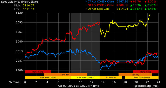 Giá vàng tăng vọt bởi hoạt động mua vào để trú ẩn an toàn khi lợi suất trái phiếu kho bạc Hoa Kỳ tăng vọt do lo ngại về sự ổn định của thị trường trái phiếu kho bạc Hoa Kỳ.