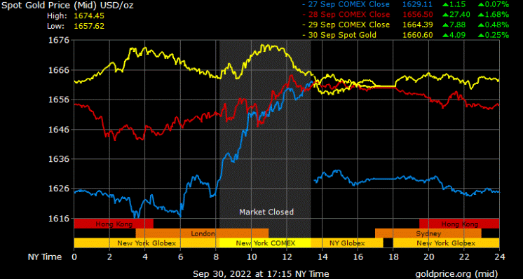 Giá vàng tương lai giao tháng 12/2022 trên sàn Comex New York tăng 3,4 USD lên 1.672 USD/ounce.