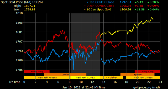 Giá vàng tương lai giao tháng 2/2022 trên sàn Comex New York tăng gần 8 USD lên 1.806,7 USD/ounce.