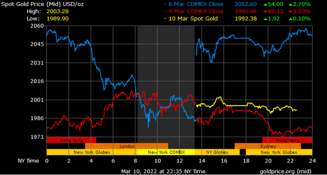Giá vàng tương lai giao tháng 4/2022 trên sàn Comex New York tăng 12,2 USD lên 2.000,4 USD/ounce.