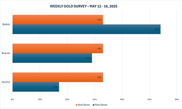 Cuộc khảo sát vàng hàng tuần mới nhất của Kitco News cho thấy các chuyên gia trong ngành chia đều quan điểm giữa phe mua, phe bán và phe trung lập, trong khi phần lớn các nhà giao dịch bán lẻ vẫn giữ quan điểm lạc quan sau khi kim loại màu vàng này tăng mạnh.