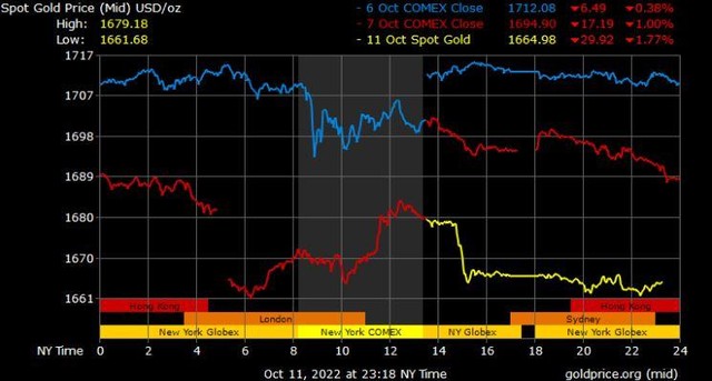 Tuần trước, giá vàng đã chứng kiến một đợt phục hồi ngắn hạn ấn tượng đưa giá lên mức cao nhất trong một tháng; tuy nhiên, thị trường đã không thể giữ mức tăng trên 1.700 USD/ounce. Các nhà phân tích cho biết, định vị đầu cơ giảm giá ở mức cao nhất trong nhiều năm sẽ khiến vàng dễ bay hơi và dễ bị ép giá trong thời gian ngắn, nhưng vàng sẽ phải vật lộn để duy trì bất kỳ đà tăng giá nào khi Cục Dự trữ Liên bang tiếp tục tăng lãi suất mạnh mẽ.