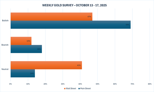 Cuộc khảo sát vàng hàng tuần mới nhất của Kitco News cho thấy một nửa phe lạc quan của Phố Wall chuyển sang trung lập về vàng sau khi giá vượt ngưỡng 4.000 USD/ounce, trong khi các nhà đầu tư Main Street cũng giảm bớt sự lạc quan của họ đối với vàng vào tuần tới.