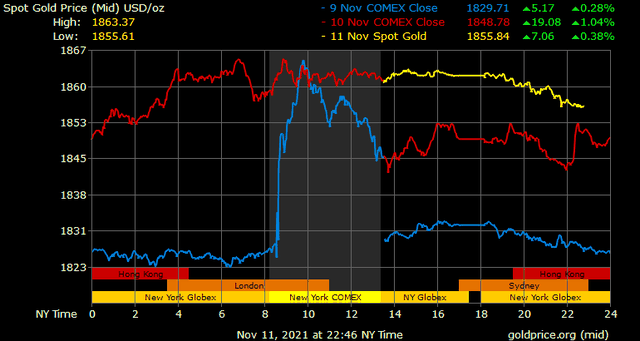 Giá vàng đã tăng nhanh sau khi vượt qua mốc cản tâm lý mạnh 1.800 USD/ounce và bứt tốc bởi dữ liệu lạm phát của Mỹ đạt mức cao nhất trong 30 năm qua. Thêm vào đó, nhu cầu vàng vật chất về cuối năm thường cao hơn mức trung bình trong năm cũng đã cộng hưởng, đẩy giá vàng lên mức cao nhất trong 5 tháng qua.