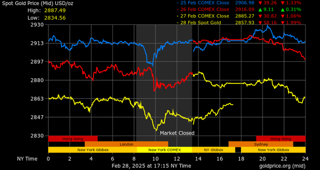 Điểm dữ liệu đáng chú ý là báo cáo thu nhập và chi tiêu cá nhân tháng 1 và chỉ số lạm phát chi tiêu tiêu dùng cá nhân (PCE) của Hoa Kỳ cho thấy, chỉ số giá PCE tăng 2,5% so với cùng kỳ năm trước, phù hợp với kỳ vọng của thị trường và so sánh với mức tăng 2,6% trong báo cáo tháng 12. Thị trường vàng và bạc không có phản ứng giá lớn nào đối với báo cáo. Barron's báo cáo rằng, dữ liệu PCE "có thể cung cấp cho Cục Dự trữ Liên bang lý do để hạ lãi suất một lần nữa trong năm nay".