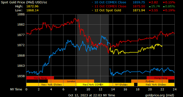 Được biết, theo báo cáo lạm phát quan trọng của Hoa Kỳ, chỉ số giá tiêu dùng (CPI) trong tháng 9 tăng 4% so với tháng trước và tăng 3,7% so với cùng kỳ năm ngoái, cao hơn so với dự báo trước đây. Chỉ số CPI “ấm hơn” một chút so với dự kiến đã làm giảm nhẹ thị trường kim loại quý.