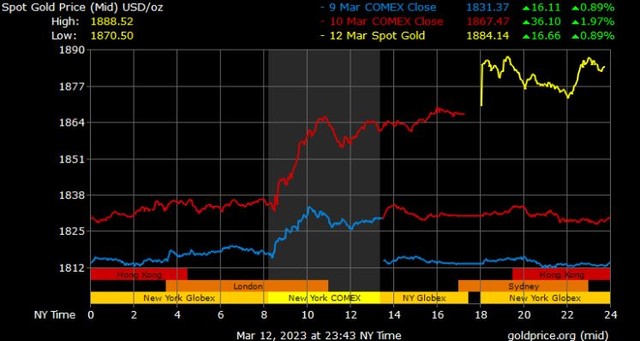Nhu cầu về tài sản an toàn được nêu bật khi Ngân hàng Thung lũng Silicon, ngân hàng lớn thứ 16 của Hoa Kỳ, sụp đổ sau khi bị người gửi tiền và nhà đầu tư "tháo chạy" khỏi ngân hàng.