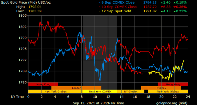 Giá vàng tương lai giao tháng 10 trên sàn Comex New York tăng không đáng kể lên 1.790 USD/ounce.