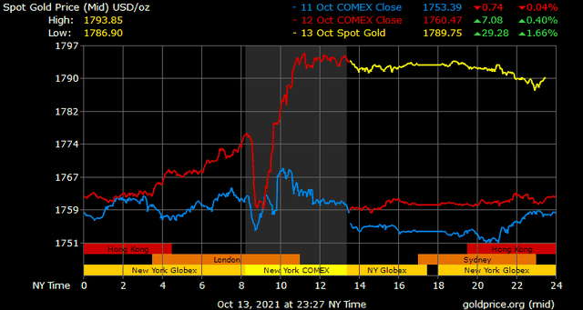 Giá vàng tăng còn do giá năng lượng ngày một nóng lên. Nhu cầu sưởi ấm vào mùa đông dự báo tăng cao sẽ dẫn đến tình trạng thiếu hụt than và khí đốt. Giá năng lượng leo thang khiến giới đầu tư lo ngại lạm phát gia tăng. Do đó, nhu cầu trú ẩn an toàn lại được đặt vào vàng.