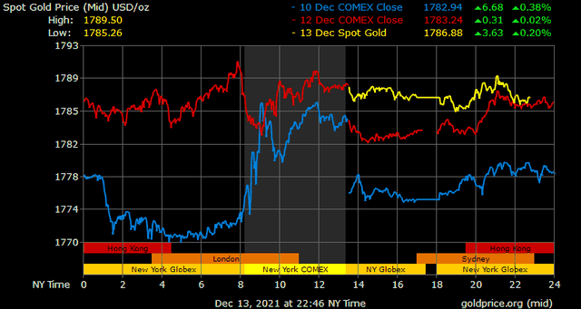 Giá vàng tương lai giao tháng 1/2022 trên sàn Comex New York giảm hơn 1,5 USD xuống 1.785,7 USD/ounce.