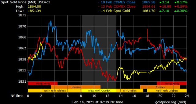 Bên cạnh đó, thanh khoản trên thị trường tương lai vàng có chút yếu đi khi các thương nhân và nhà đầu tư đang đợi dữ liệu kinh tế quan trọng từ báo cáo lạm phát của Hoa Kỳ. CPI được dự báo tăng 6,2% so với cùng kỳ năm ngoái và thấp hơn chút ít so với mức tăng 6,5% trong báo cáo tháng 12.