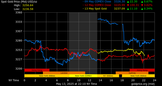 Trên thị trường vàng thế giới, giá vàng giao ngay chốt phiên hôm qua tại Mỹ tăng 15,1 USD lên mức 3.250,2 USD/ounce. Sang phiên châu Á sáng nay, giá vàng đảo chiều giảm 11,4 USD xuống 3.238,7 USD/ounce.