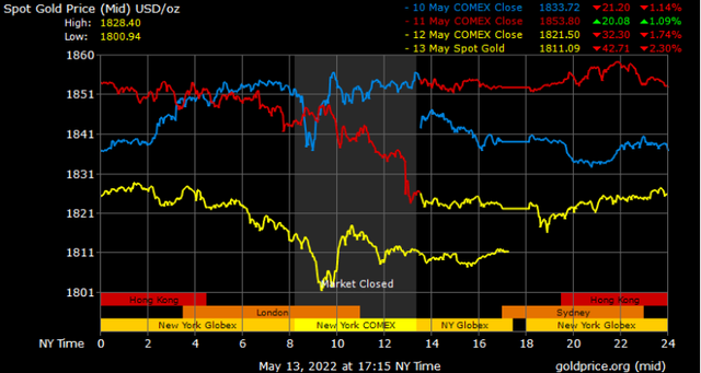 Giá vàng tương lai giao tháng 6/2022 trên sàn Comex New York giảm 16,4 USD xuống 1.808,2 USD/ounce