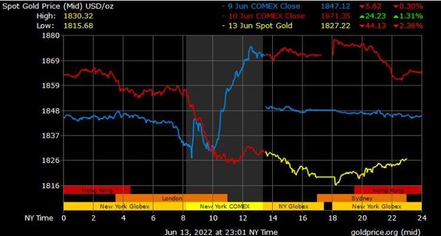 Giá vàng tương lai giao tháng 8/2022 trên sàn Comex New York giảm 43,7 USD xuống mức 1.831,8 USD/ounce.