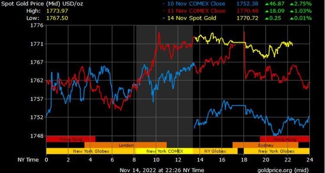 Giá vàng tương lai giao tháng 12/2022 trên sàn Comex New York tăng 7,5 USD lên mức 1.776,9 USD/ounce.