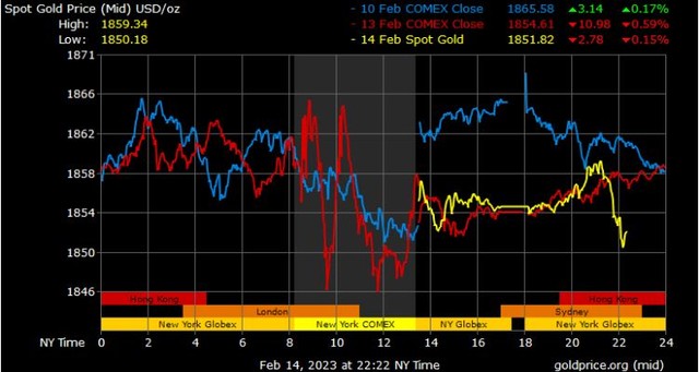 Giá vàng tương lai giao tháng 4/2023 trên sàn Comex New York tăng nhẹ 1,9 USD lên 1.865,4 USD/ounce.