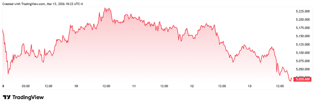 Giá vàng đã dao động quanh mức 5.000 - 5.240 USD/ounce trong tuần này, tăng đều đặn đến sáng thứ Ba, sau đó giảm chậm kéo dài đến chiều thứ Sáu khi các nhà đầu tư ngày càng lo ngại về khả năng xảy ra một cuộc chiến tranh kéo dài và phức tạp hơn ở Trung Đông.