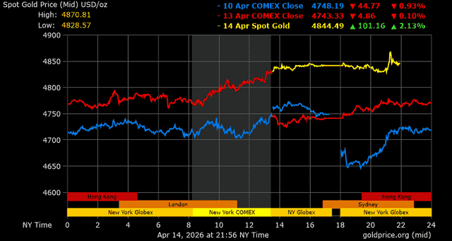 Giá vàng hôm nay ngày 15/4: USD suy yếu, vàng tăng vọt lên mốc 4.850 USD/ounce