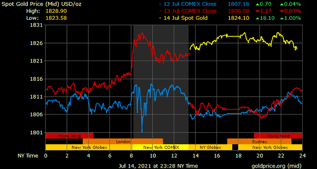 Giá vàng tương lai giao tháng 8 trên sàn Comex New York tăng nhẹ lên trên 1.8125 USD/ounce.
