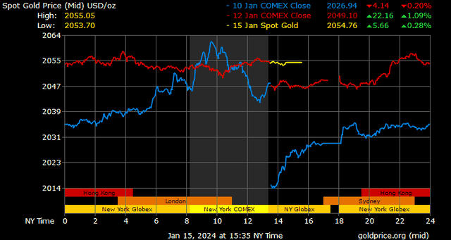 Vàng tương đối "yên tĩnh” khi thị trường Hoa Kỳ đóng cửa để kỷ niệm Ngày Martin Luther King Jr và không nhận thấy nhiều hướng đi từ đồng bạc xanh khi chỉ số đô la Mỹ giao dịch uể oải trong kỳ nghỉ lễ.