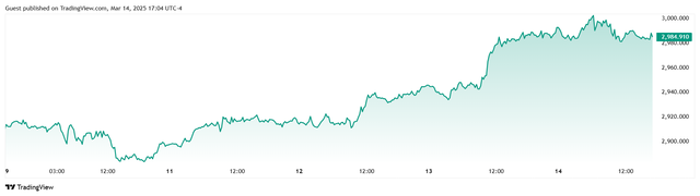 Giá vàng tương lai giao tháng 4/2025 trên sàn Comex New York tăng 9,8 USD, tương ứng tăng 0,33% lên mức 3.001,1 USD/ounce. Tính chung cả tuần, giá vàng giao ngay tăng 87 USD/ounce, tương ứng tăng 2,99%.