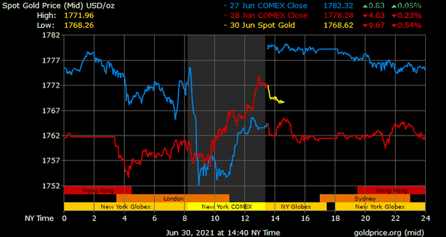 Giá vàng tương lai giao tháng 8 trên sàn Comex New York tăng 4,4 USD lên 1.771,8 USD/ounce.