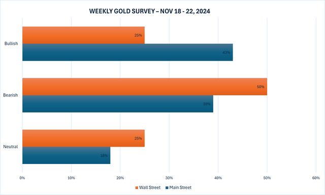 Khảo sát vàng hàng tuần mới nhất của Kitco News cho thấy tâm lý bi quan mạnh mẽ từ các chuyên gia trong ngành, trong khi các nhà giao dịch bán lẻ cũng ngày càng lo lắng về triển vọng ngắn hạn của kim loại màu vàng.