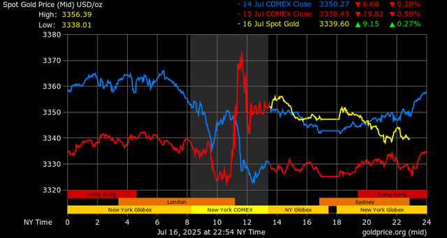 Giá vàng tăng vọt ngay sau tin đồn Tổng thống Trump sắp sa thải Chủ tịch Fed Jerome Powell nhưng sau đó đã hạ nhiệt khi ông Trump, trong một bức ảnh chụp tại Nhà Trắng được truyền hình trực tiếp, phát biểu rằng, mặc dù ông rất lo ngại về việc Powell không cắt giảm lãi suất của Mỹ, nhưng Trump không có ý định sa thải Powell ngay lập tức.